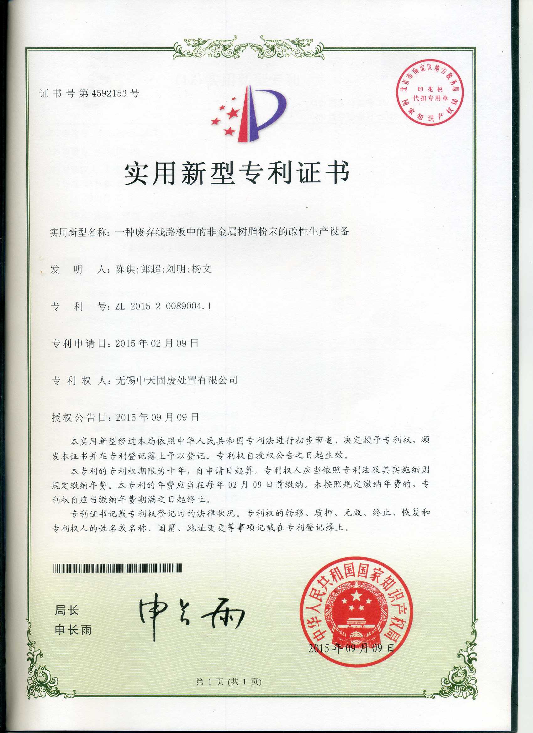 摘要:一种废弃线路板中的非金属树脂粉末的改性生产设备...
