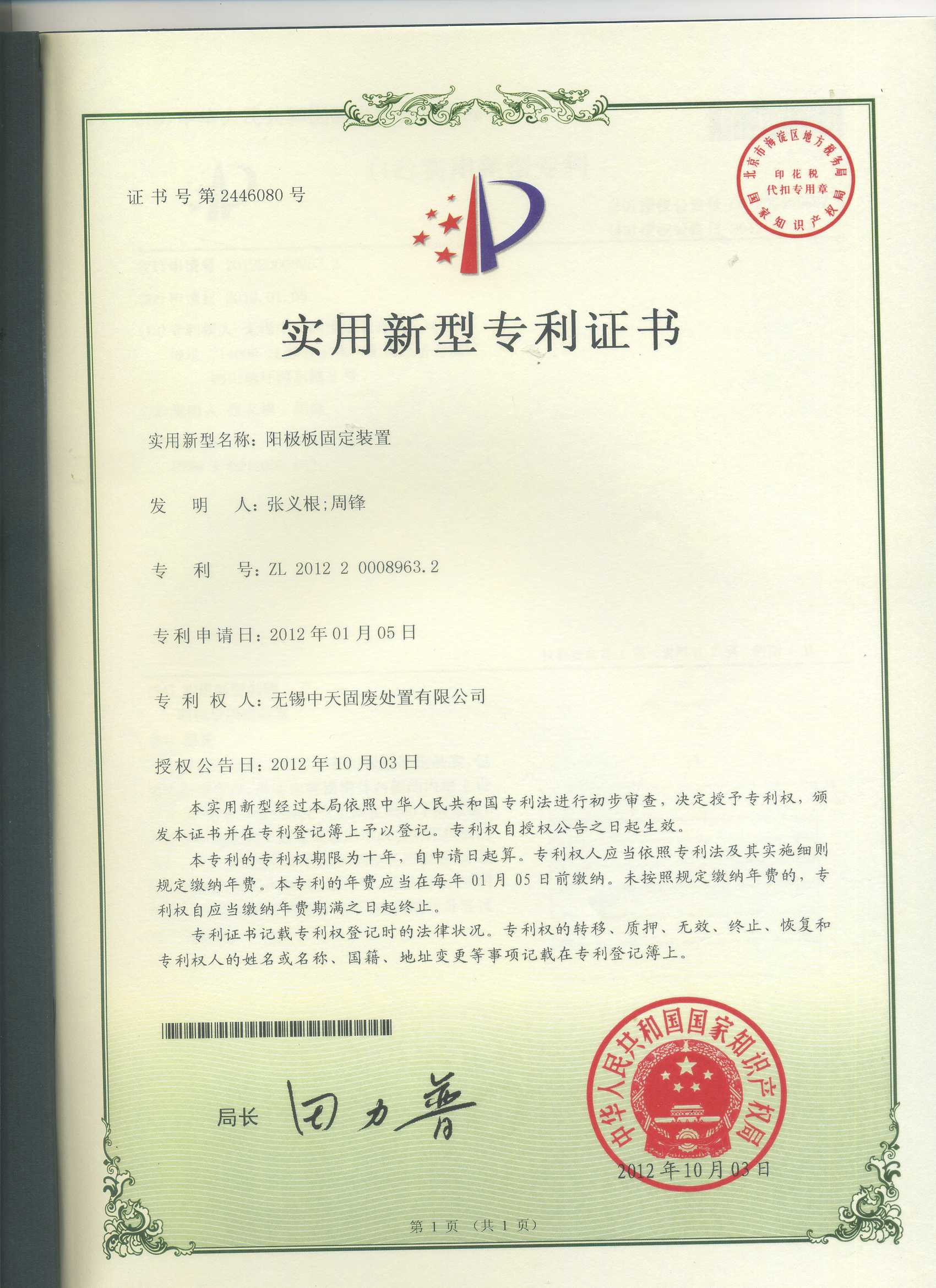 摘要:阳极板固定装置 发明人:周义根、周峰...