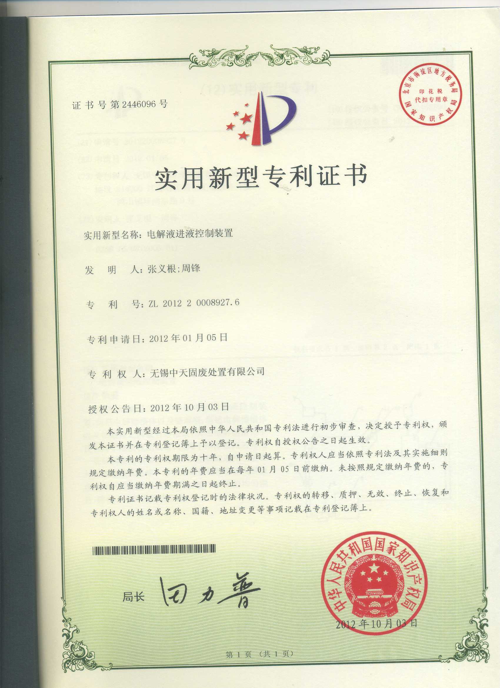摘要:电解液进液控制装置 发明人:周义根、周峰...