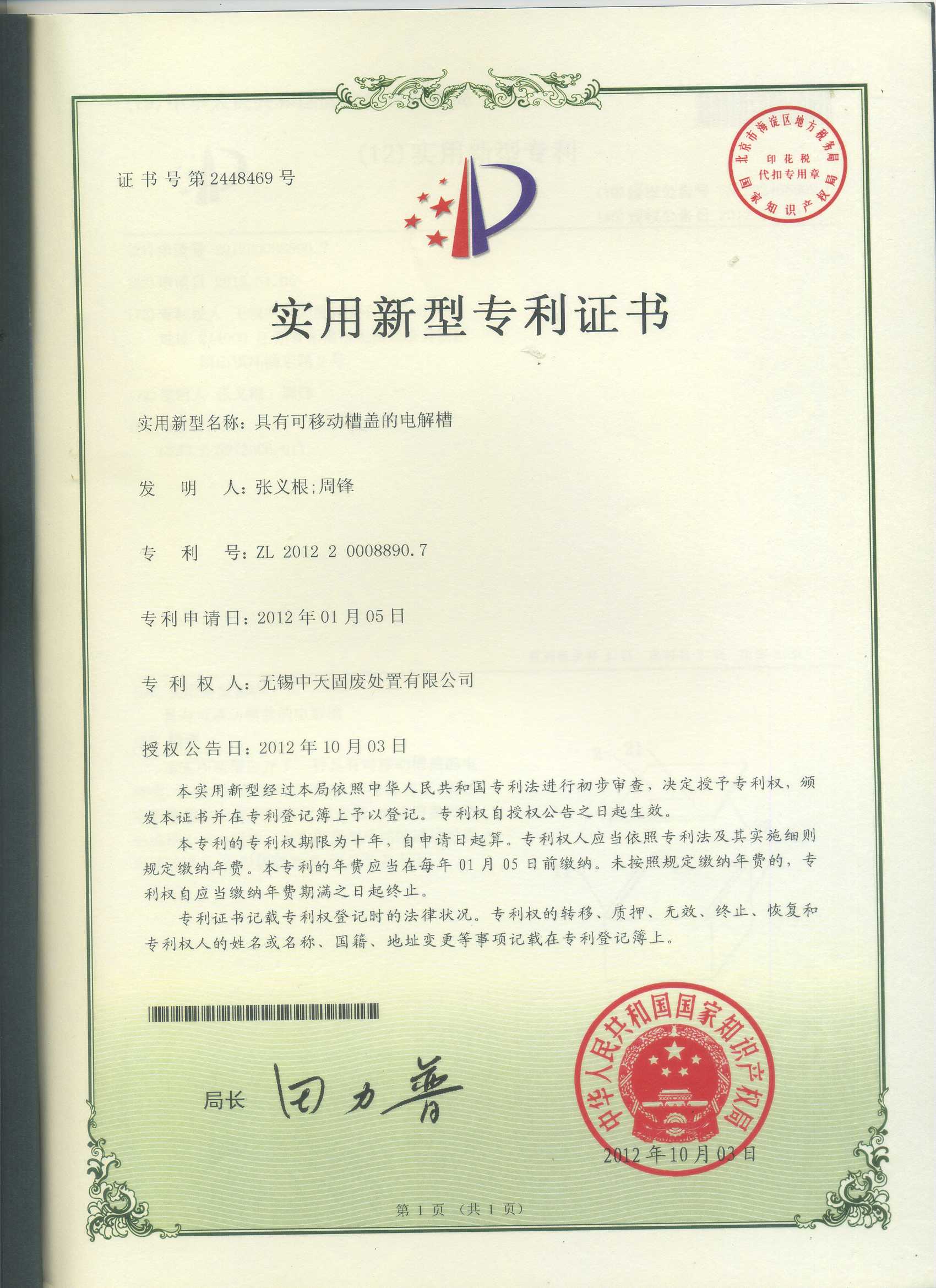 摘要:具有可移动槽盖的电解槽 发明人:周义根、周峰...