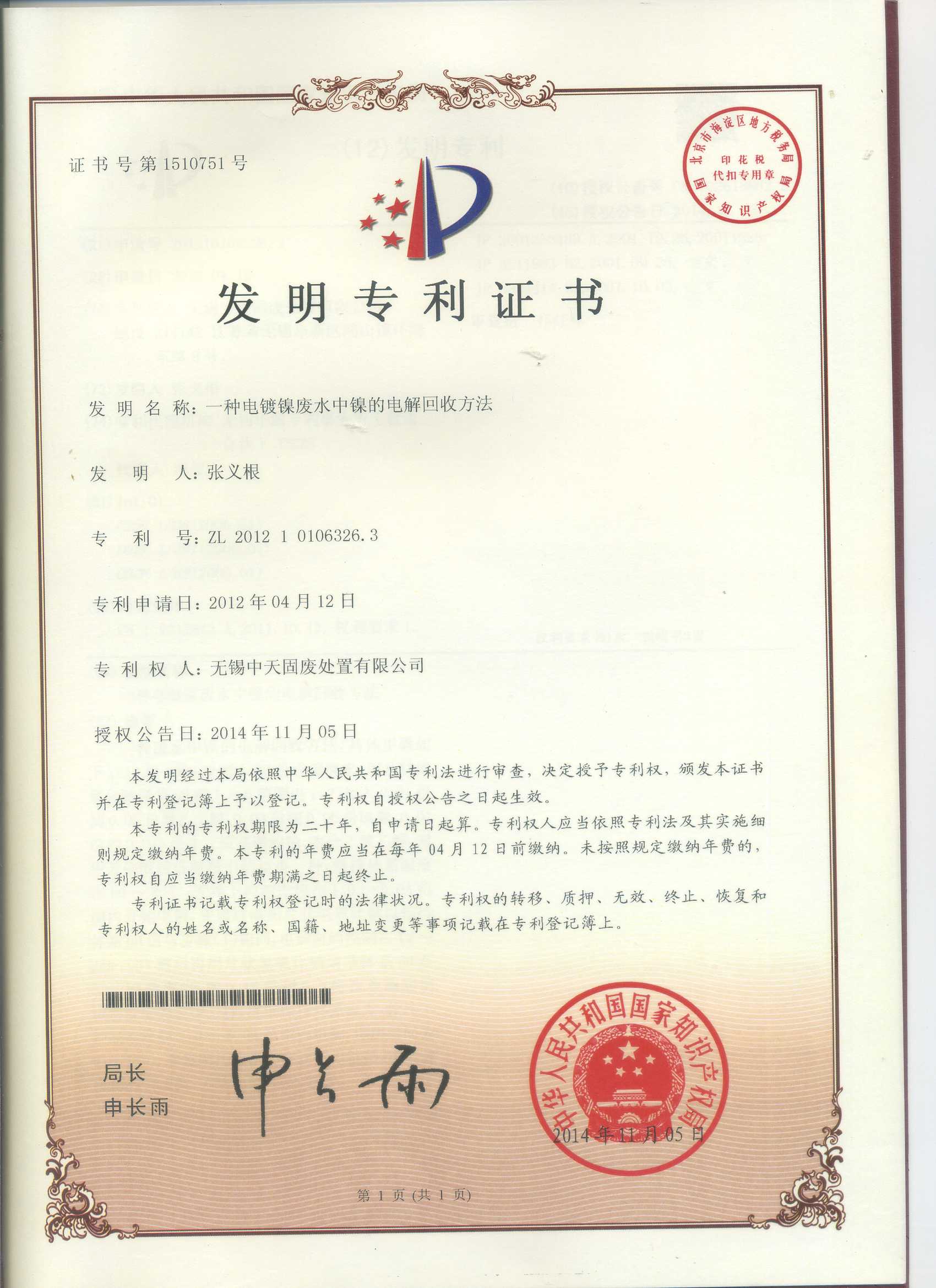摘要:一种电镀镍废水中镍的电解回收方法 发明人:张义根...